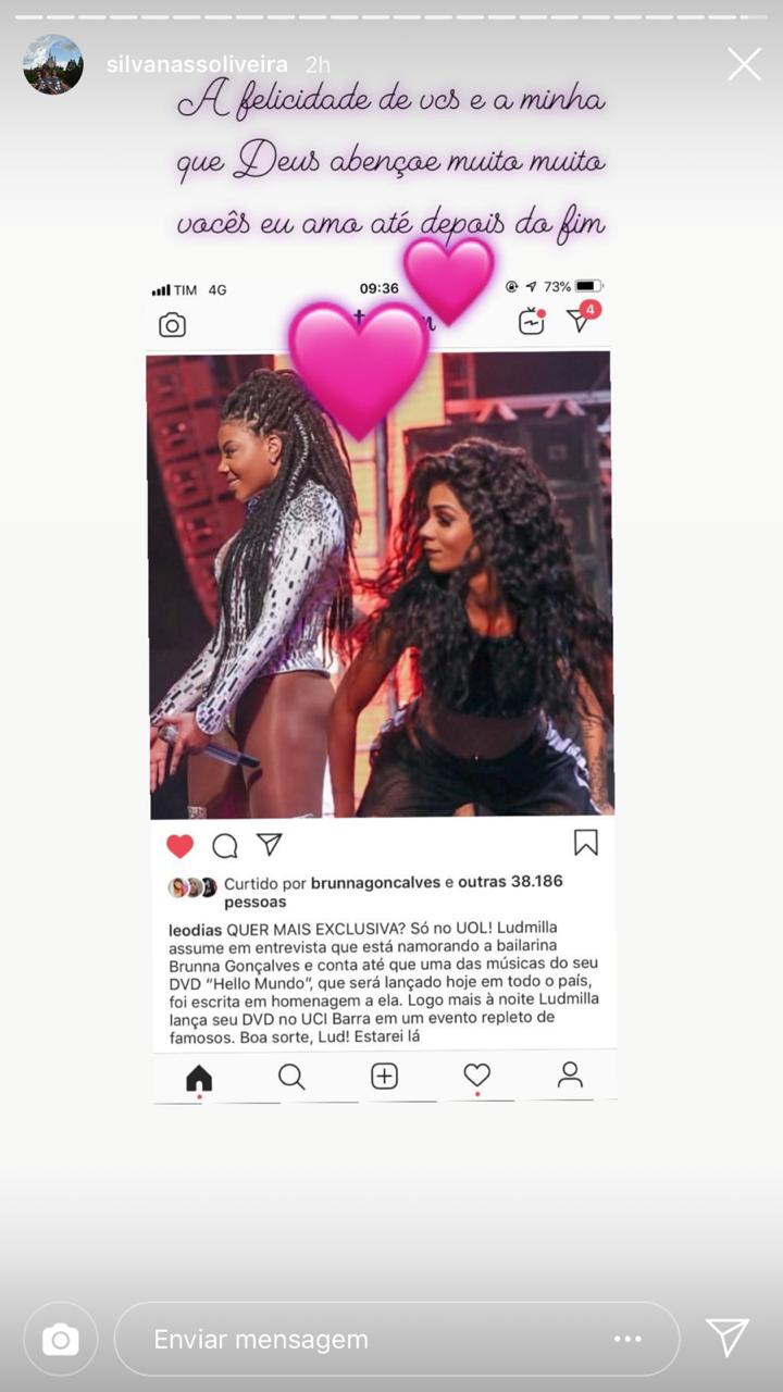 Após Ludmilla assumir no namoro com a bailarina Brunna Gonçalves, a mãe da cantora, Silvana Oliveira, publicou mensagens nas redes sociais para mostrar seu apoio ao relacionamento da filha. As informações são da Revista Quem.