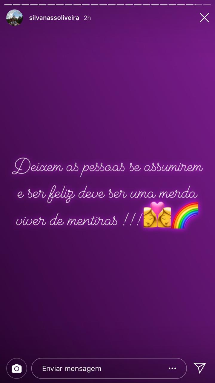 "Deixem as pessoas se assumirem e serem felizes. Deve ser uma merda viver de mentiras. A felicidade de vocês é a minha. Que Deus abençoe muito vocês. Eu amo até depois do fim", escreveu Silvana.