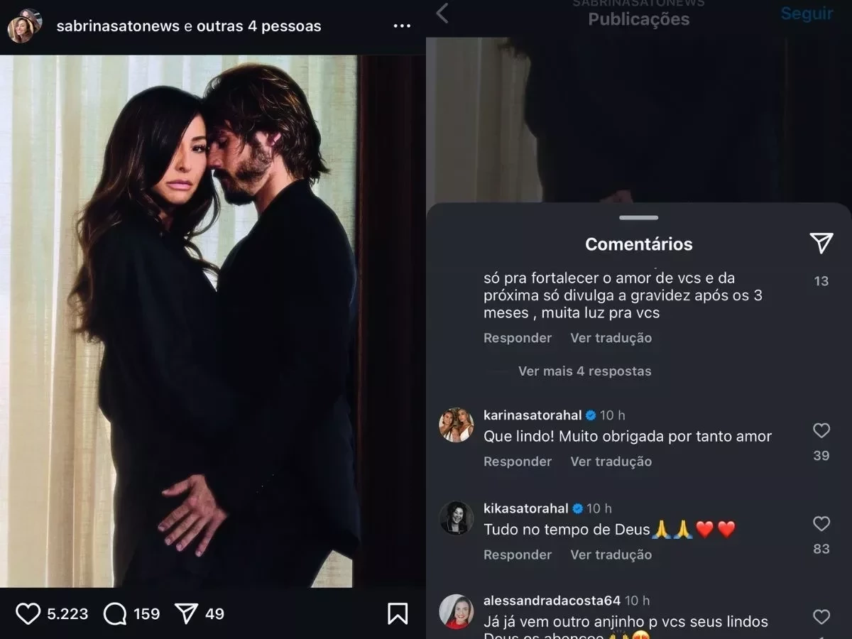 A irmã da influenciadora, Karina Sato, também expressou gratidão pelo carinho dos fãs. Em um comentário na mesma publicação, ela escreveu: “Que lindo! Obrigada por tanto amor”, e ainda compartilhou a postagem em seus Stories no Instagram, destacando o apoio recebido neste momento.