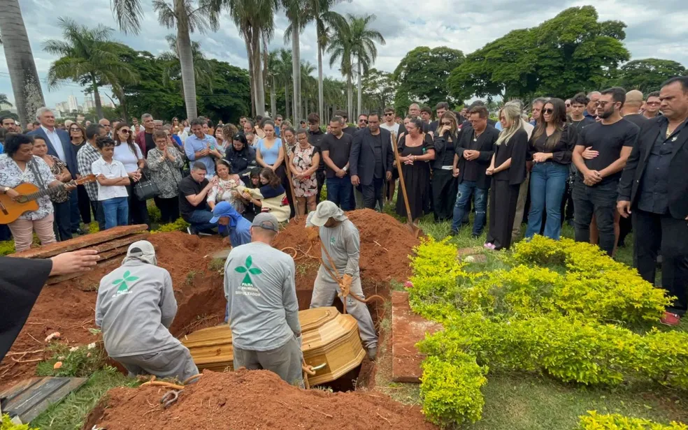 Mãe do cantor Leonardo, é enterrada no mesmo túmulo do filho Leandro (Foto: Reprodução/Michel Gomes/g1)