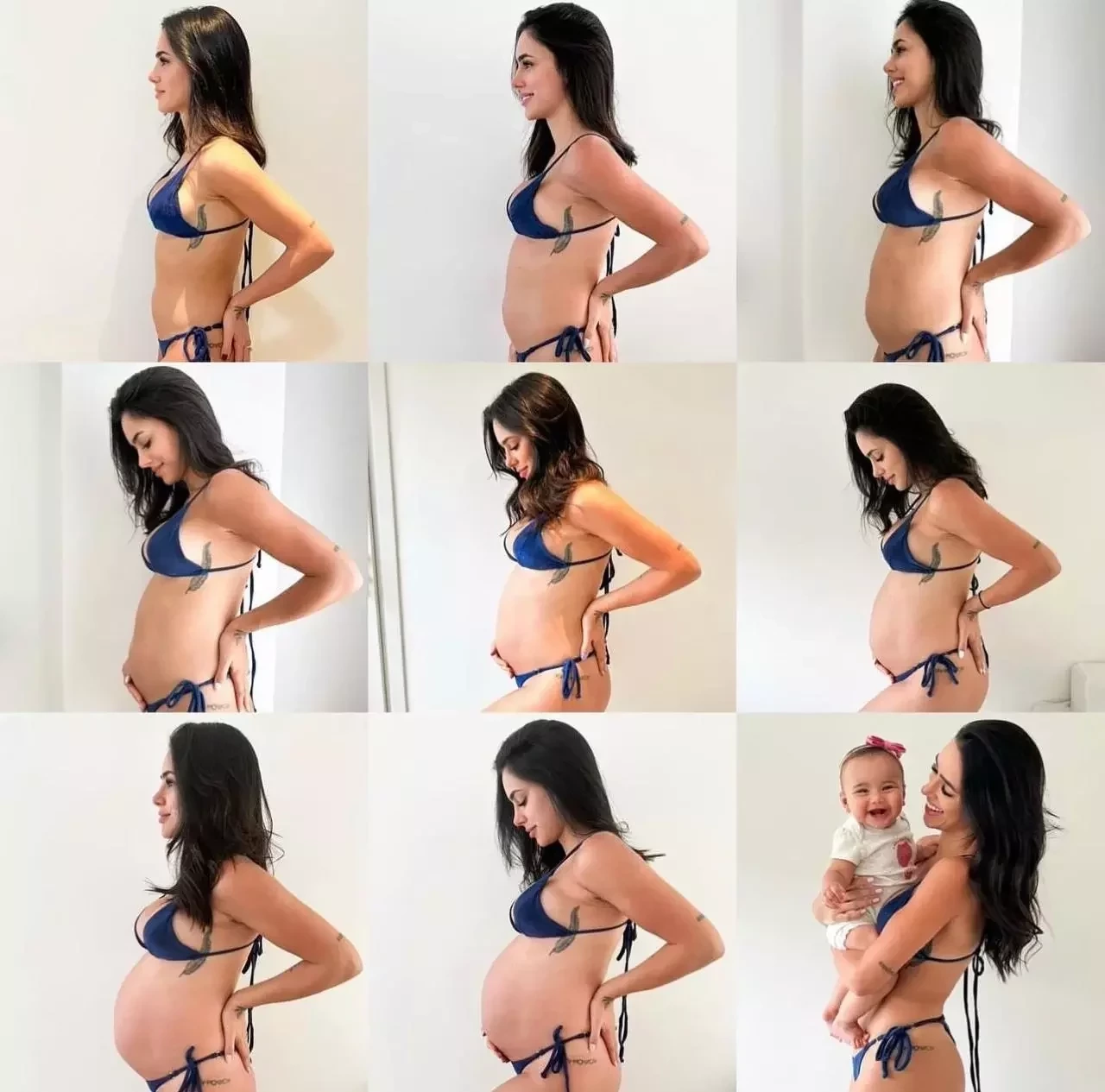 Bruna Biancardi, mãe da Mavie, de 6 meses, exibiu seu corpo durante a gravidez da bebê, que é fruto de seu relacionamento com Neymar. Ela usou o mesmo biquíni nas fotos para mostrar a transformação do seu corpo.