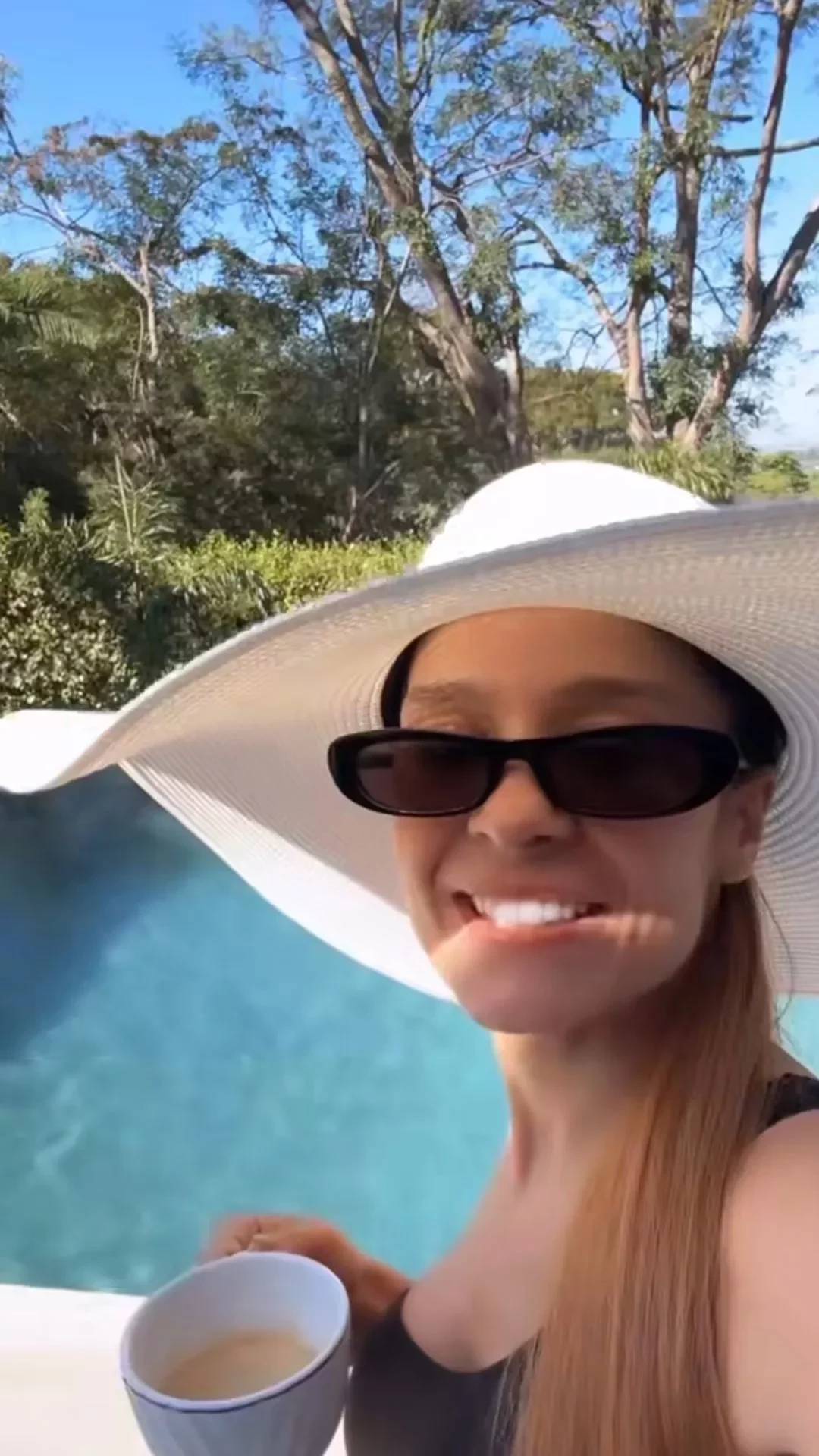 A cantora Maiara, da dupla com Maraisa, voltou a mostrar a silhueta esbelta em um traje de banho. Na tarde desta quarta-feira (26), a artista compartilhou fotos e vídeos vestindo um maiô preto, óculos escuros e um chapéu branco grande enquanto aproveitava o sol na piscina de sua mansão.