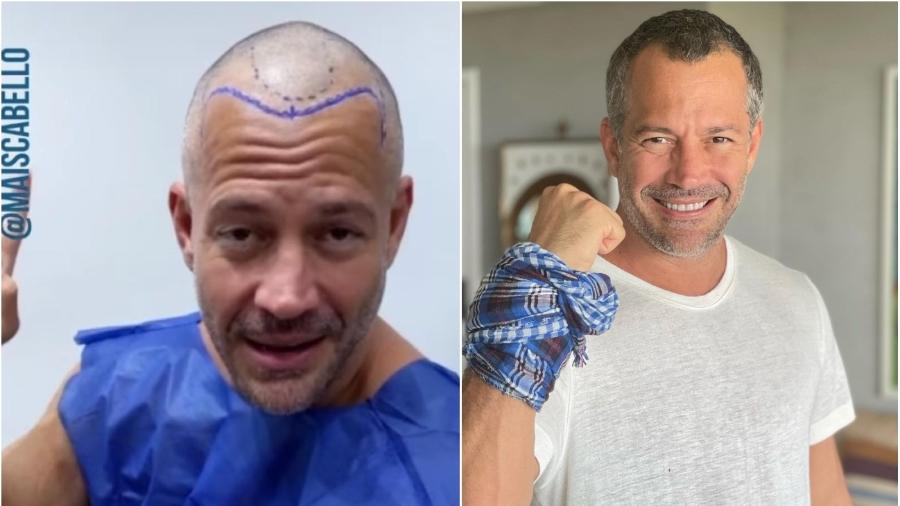 Nas imagens, o ator aparece com a marca característica na cabeça, antes de começar efetivamente o tratamento. "Pessoal, já estou aqui preparado, já vou entrar na sala e depois vou sair com mais cabelo", disse ele no vídeo, animado.