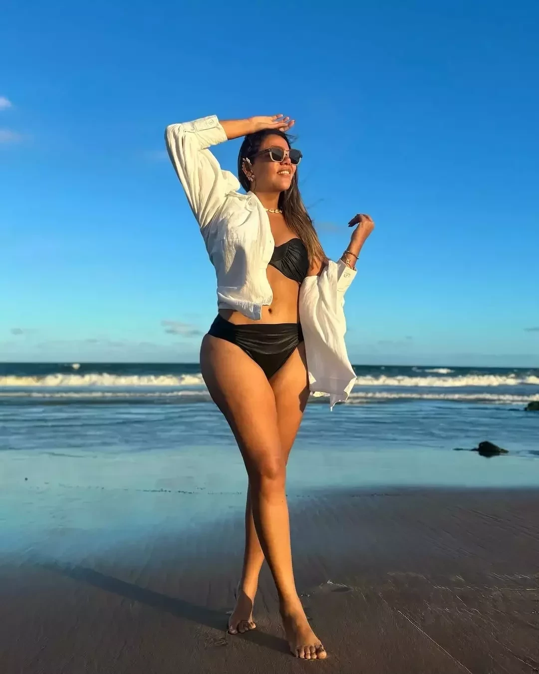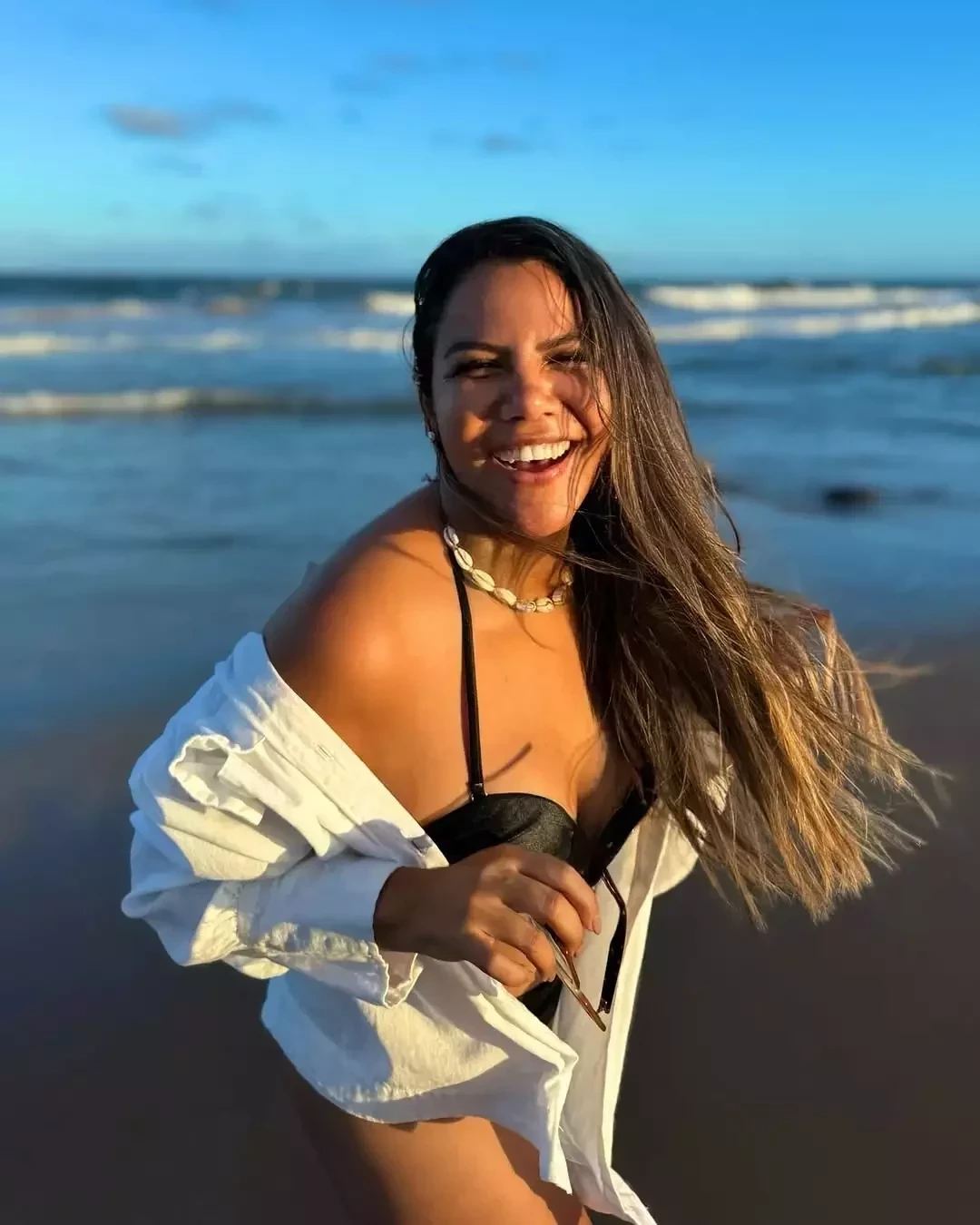 Mani Reggo abriu álbum de fotos na praia em seu perfil do Instagram nesta terça-feira (25). De biquíni preto, a ex de Davi Brito exibe suas belas curvas após perder 16 kg. ''E houve boatos de que o verão acabou’’, escreveu ela na legenda da publicação.