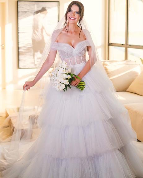 A noiva surgiu deslumbrante com um vestido estilo princesa, mas com toques modernos, incluindo transparência no tronco. “Viva o nosso amor! Deus é maravilhoso. Te amo minha vida”, disse Débora ao compartilhar uma foto oficial do grande dia.