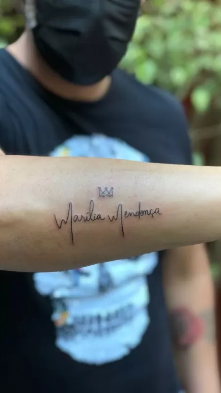 No clima das despedidas e homenagens, o profissional resolveu fazer uma tatuagem para a amiga e marcou o nome da cantora no braço. A arte, segundo ele, é para que todos consigam enxergar uma parte do amor que ele sente por Marília Mendonça.