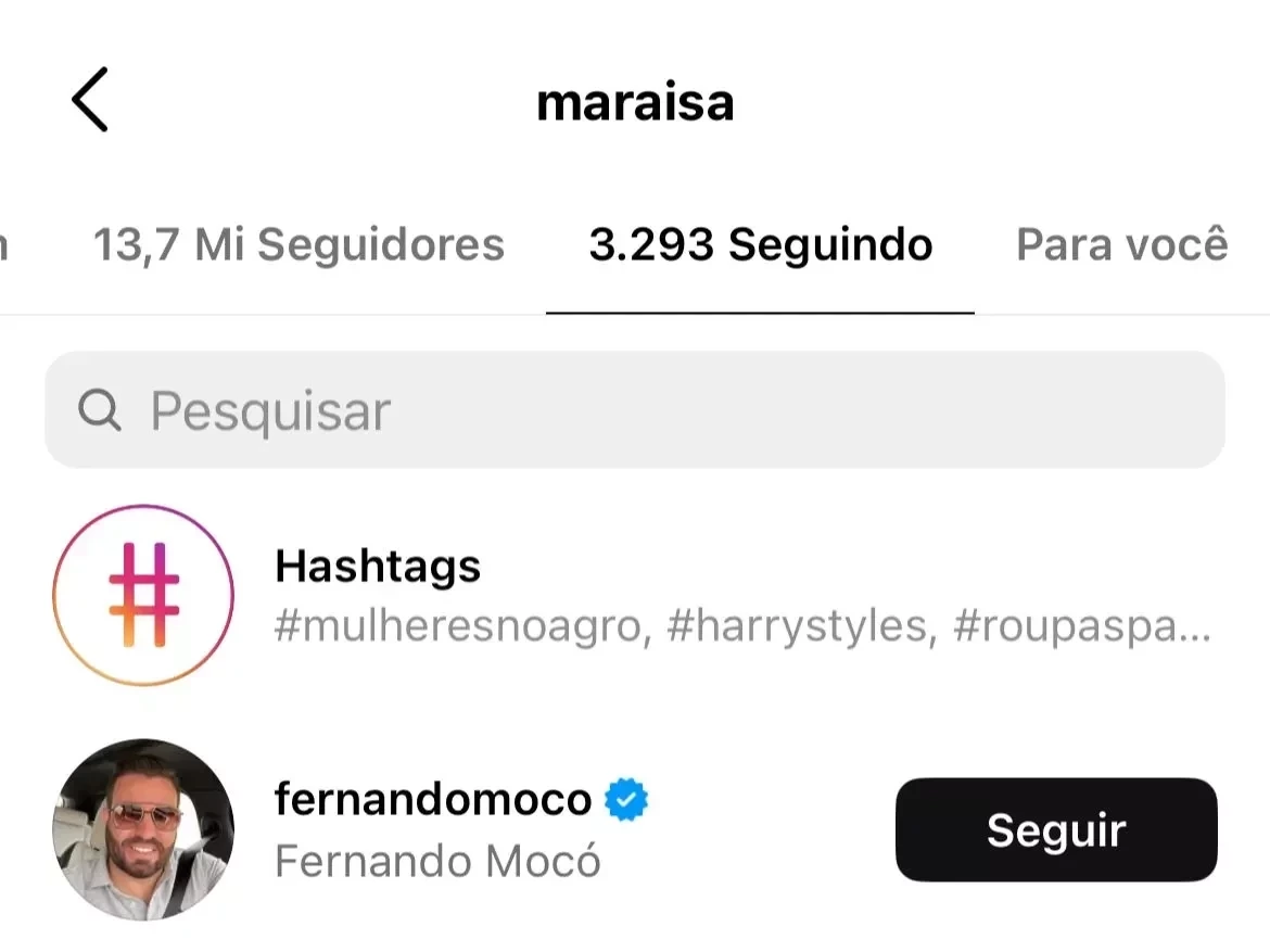 Depois de um suposto término, a cantora Maraisa e o empresário Fernando Mocó voltaram a se seguir nas redes sociais. O casal havia trocado unfollow no Instagram, mesmo com casamento marcado, mas neste sábado (13) silenciosamente voltaram a ser amigos na plataforma.