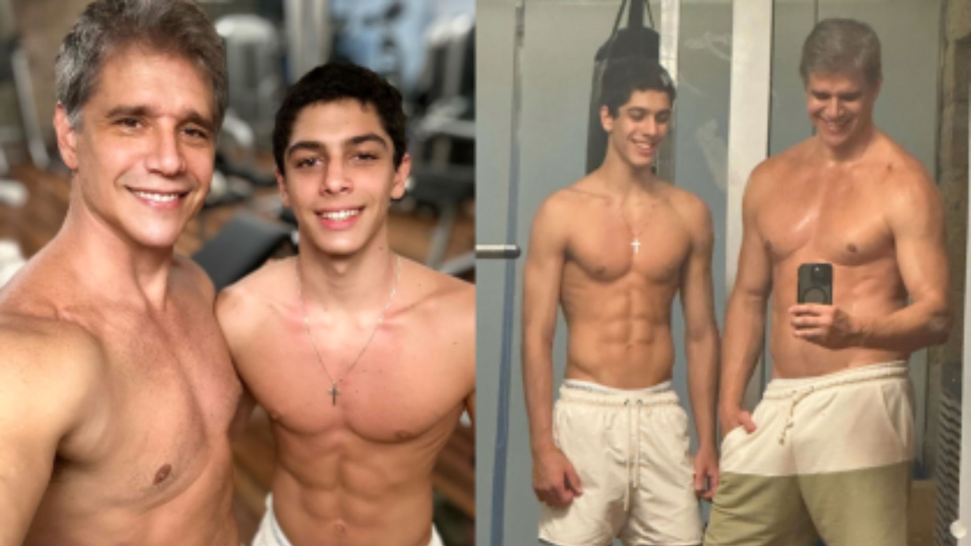 Na publicação feita em seu perfil no Instagram, o ator está diante do espelho de uma academia, mostrando o corpo sem camisa