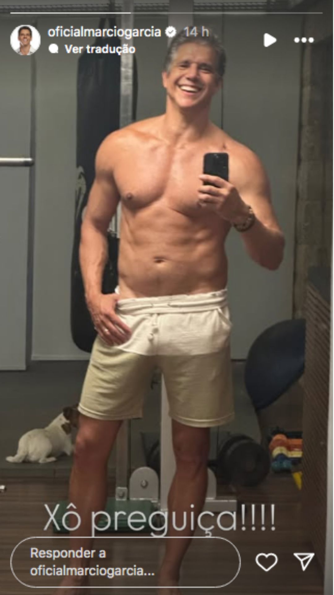 Com tom descontraído, Márcio Garcia utilizou a legenda para incentivar a realização de atividades físicas. "E você, já fez uma atividade física hoje? Se não fez o dia ainda não acabou! Terça-feira também é dia de cuidar da saúde! E olha que o tio é 5.5? Xô preguiça", escreveu.