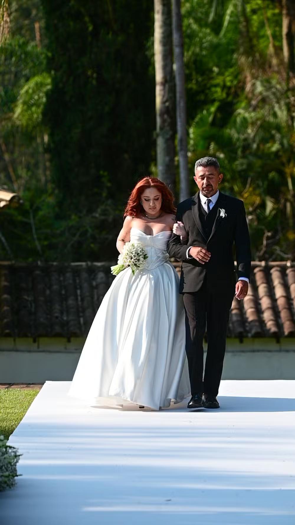 Durante a cerimônia, a artista surpreendeu ao cantar enquanto a amada caminhava até o altar. As duas optaram por vestidos com corset marcado e saia ampla. A festa contará com apresentações de Pedro Sampaio e Henry Freitas.