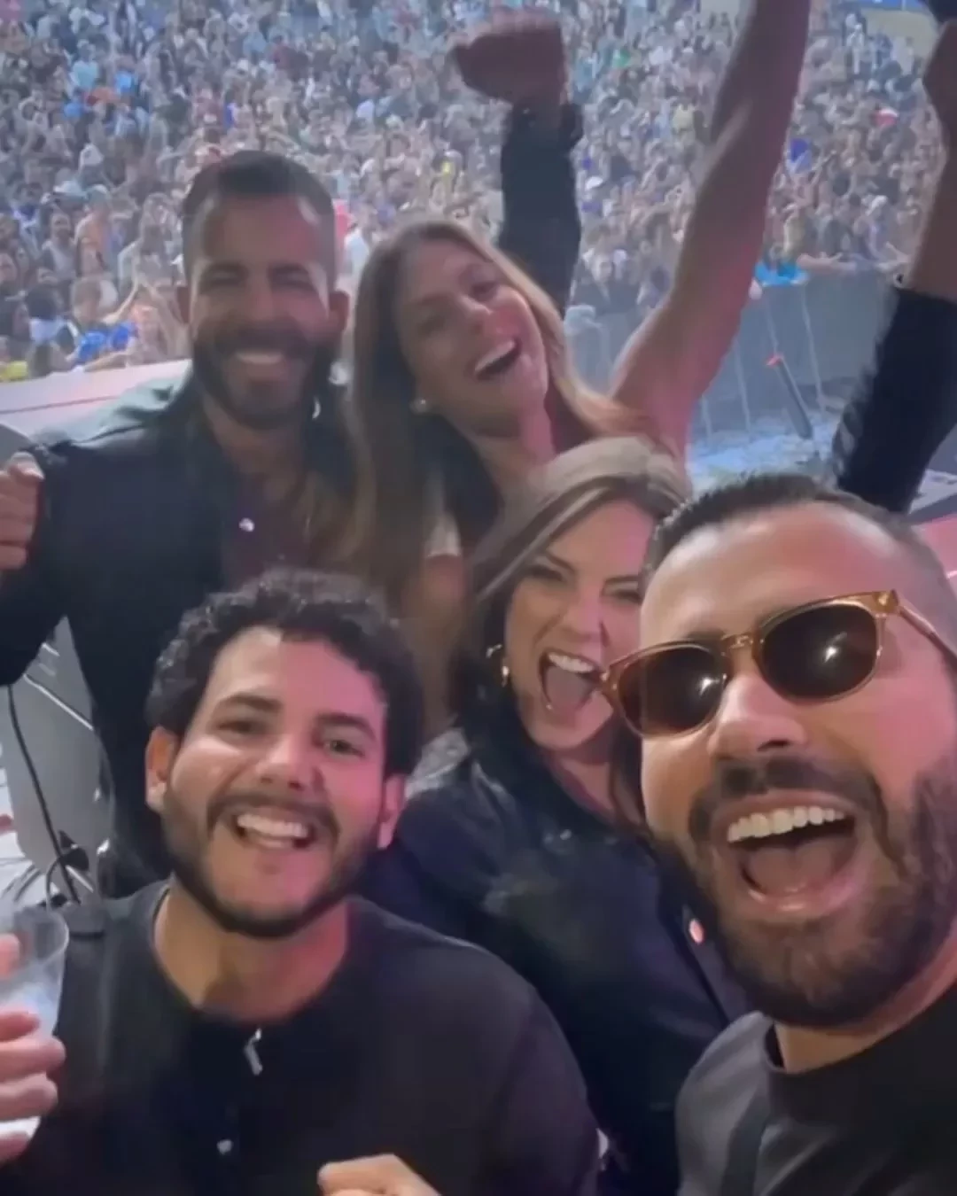 O casal estava na companhia de familiares do cantor, incluindo Rafa Marques e Pati Guerra, irmão e cunhada de Pipo, além de Bell Marques e Aninha Guerra, pais do jovem.