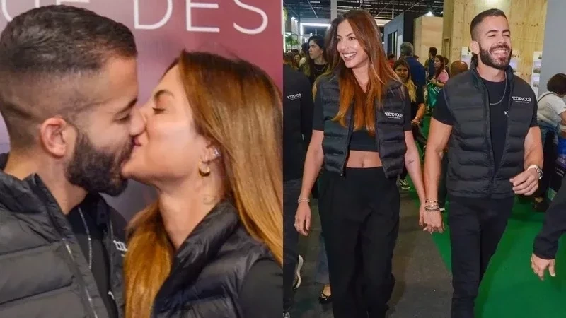 Mari Gonzalez e Pipo Marques fizeram a primeira aparição como casal. Nesta sexta-feira (14), os pombinhos estiveram na Bio Brazil Fair e Natural Tech, feira que aconteceu em São Paulo. No evento, eles circularam de mãos dadas e trocaram beijos apaixonados.