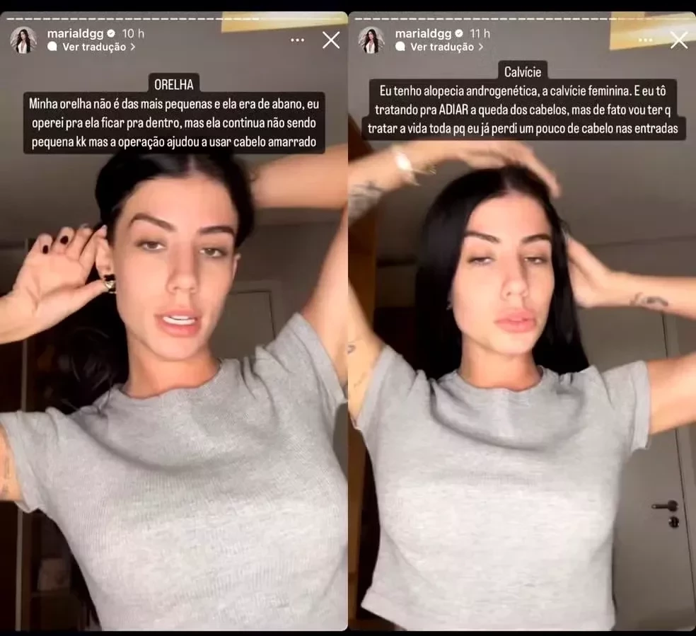 "Minha orelha não é das mais pequenas, e ela era de abano. Eu operei para ela ficar para dentro, mas ela continua não sendo pequena. A operação ajudou a usar cabelo amarrado".