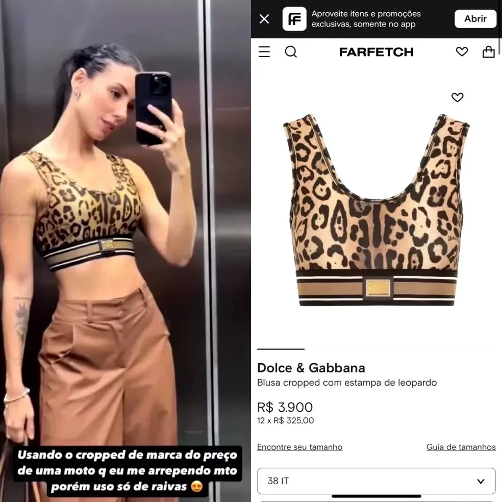 Maria Lina, de 26 anos, gerou repercussão ao aparecer usando um top da Dolce & Gabbana, avaliado em R$ 3,9 mil, na terça-feira (22). Em sua conta no Instagram, a influenciadora compartilhou sua experiência com a peça, expressando um certo arrependimento pela compra.