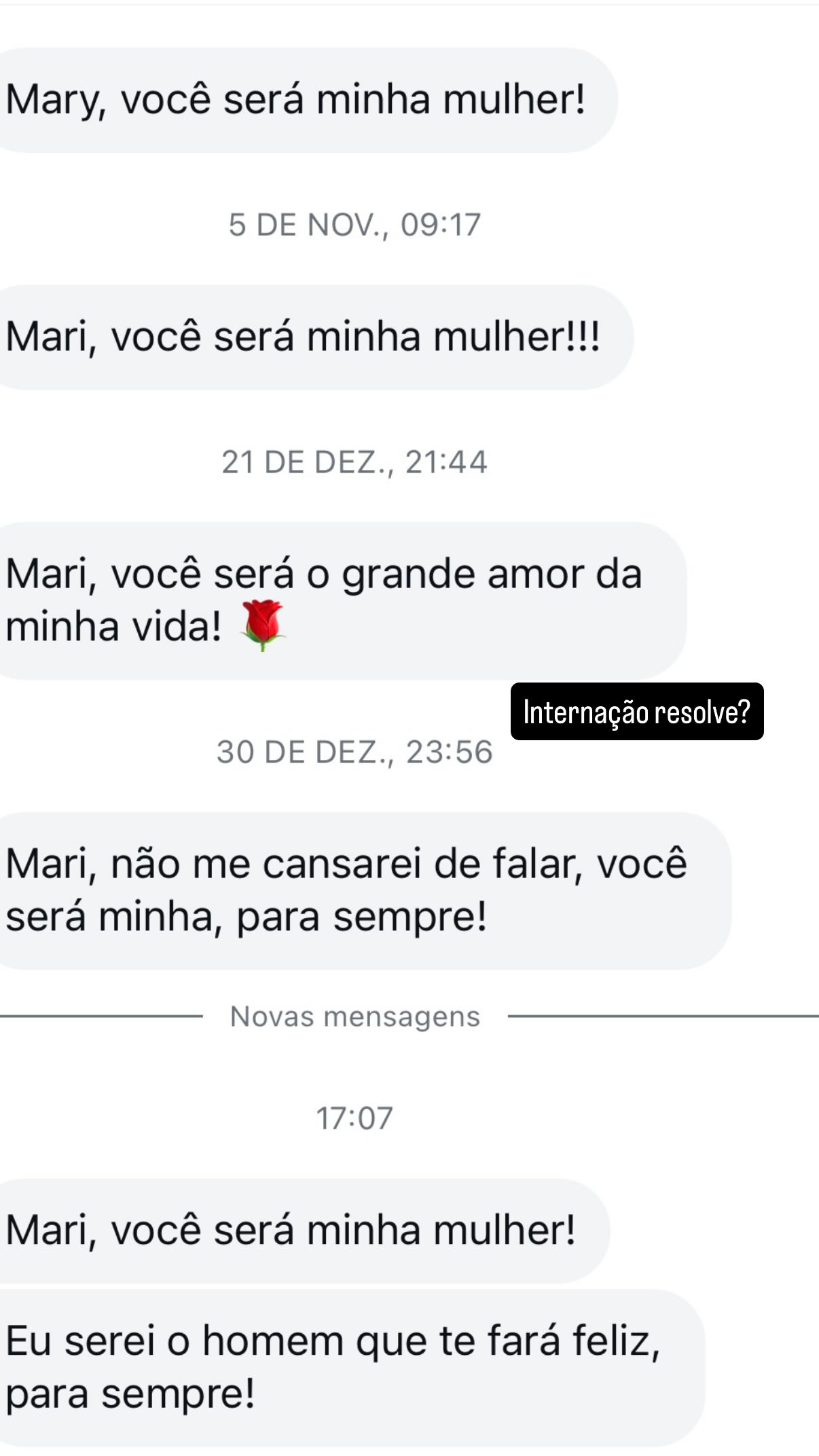 No story seguinte à exposição, Mariana afirmou que não achou engraçado o conteúdo das mensagens. "Dizem que remédio para maluco é maluco e meio, né? Só que nesse caso a gente não atinge". Ela explicou que já que bloqueou o perfil. "Eu já bloqueei, mas cria outra página".