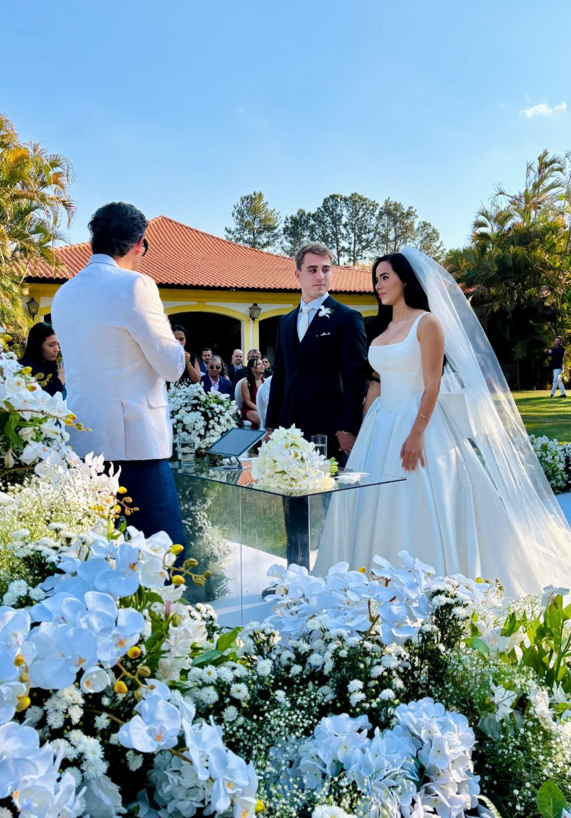 Os noivos e alguns convidados chegaram já na sexta-feira (12), quando promoveram uma “noite italiana”, com pizza e vinho, para receber familiares e amigos mais próximos. No grande dia, Mariely apostou em um vestido branco no estilo sereia, que destacou ainda mais o clima sofisticado da celebração.