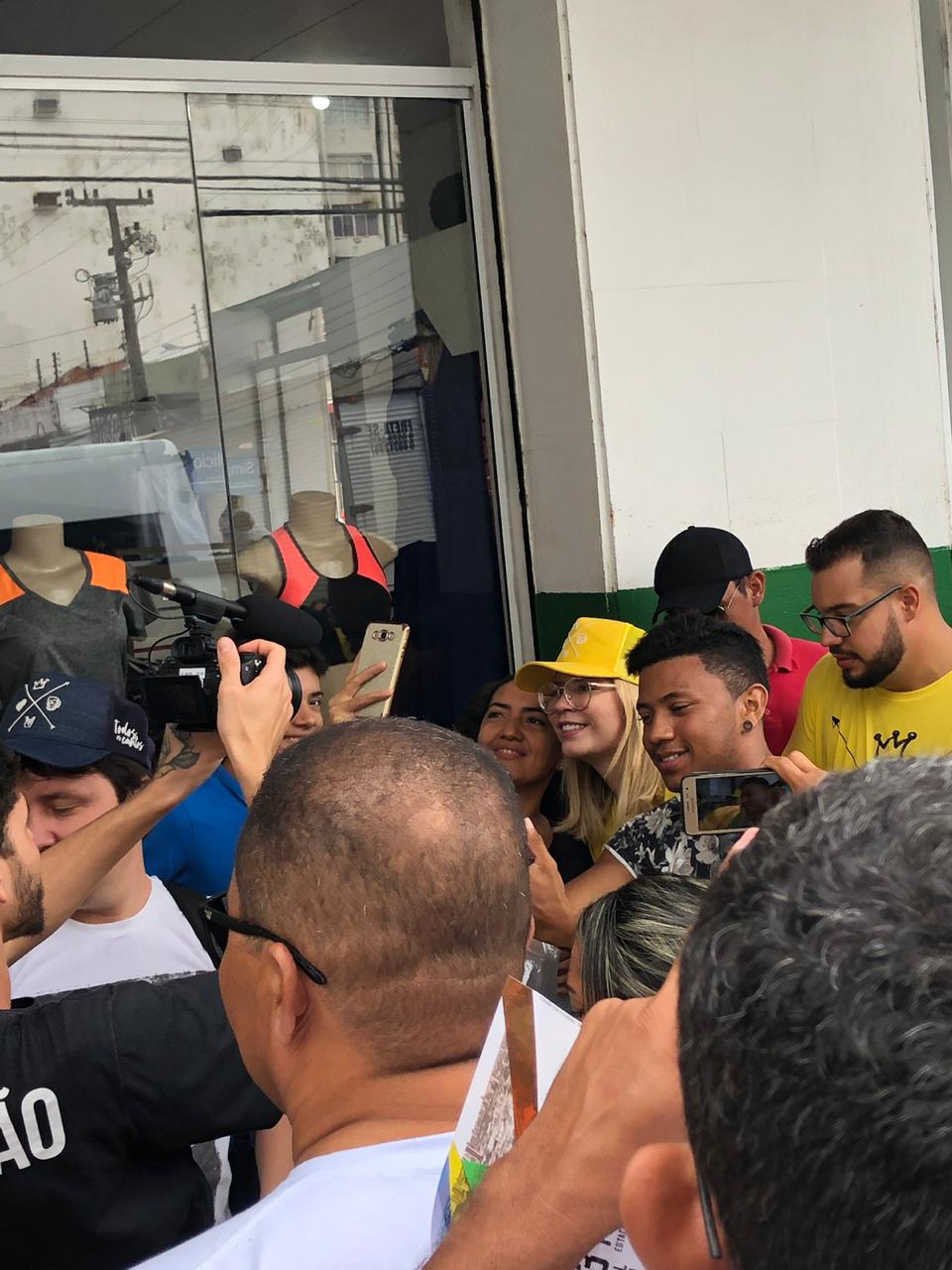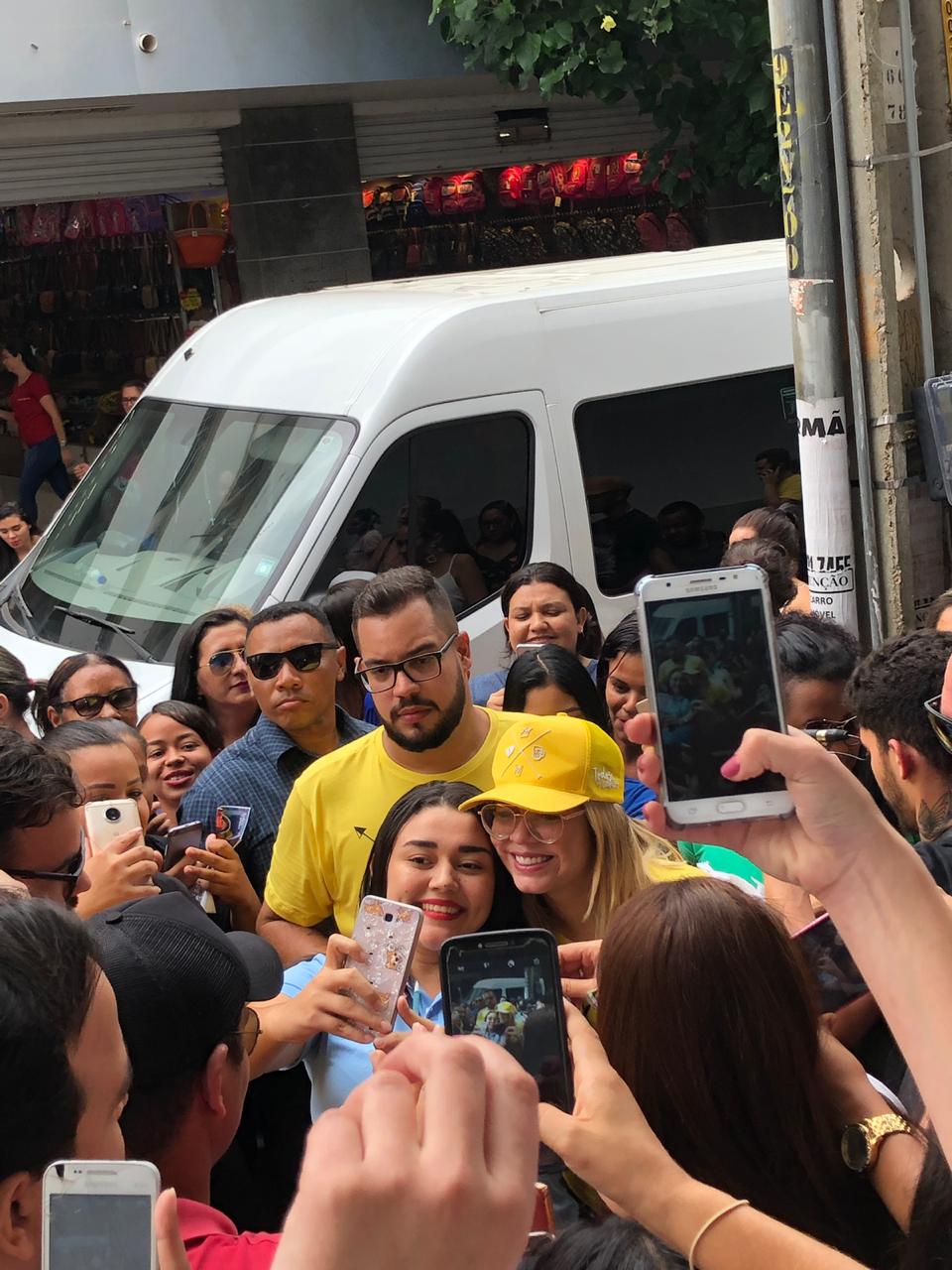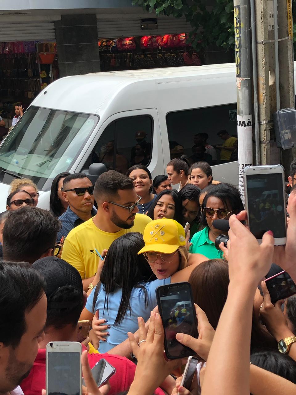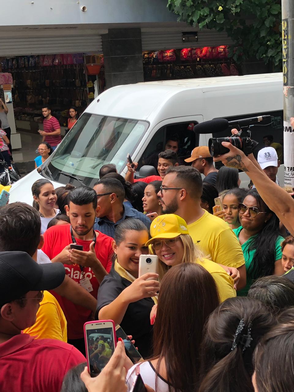 A vendedora Leidiane Rodrigues vibrou ao conseguir tirar uma foto com a cantora. “Assim que ela desceu da van que tinha pouca gente, ela estava mais acessível, super simpática, pedi para tirar selfie. É muito louco você estar no trabalho e do nada a Marília Mendonça na esquina acessível e tirando foto”, disse.