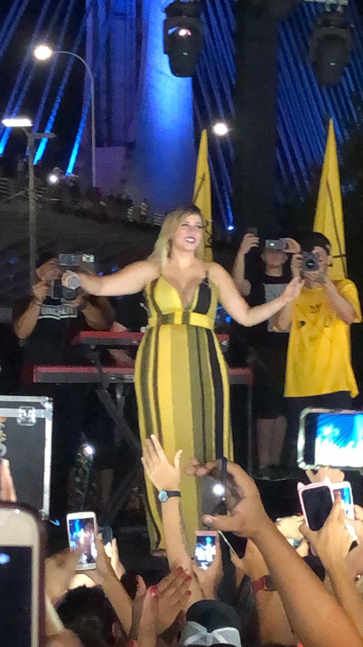 Antes de ir embora e entrar na Van, Marília Mendonça puxou um verdadeiro coral com o público cantando a música 'Ciumeira', a cantora agradeceu o carinho dos fãs e seguiu pedindo que todos comparecessem logo mais às 17h no estacionamento da Ponte Estaiada.