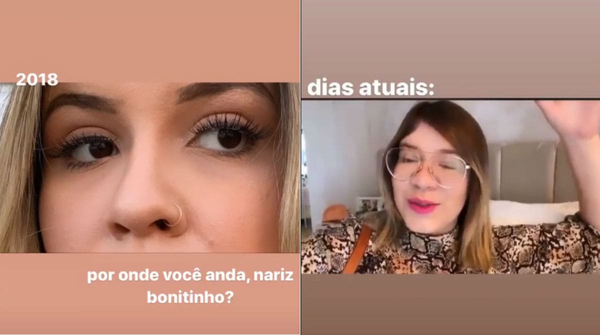 Ainda no Twitter, Marília compartilhou uma foto sua antes da gravidez, mostrando o nariz, com um piercing. "Ai, que saudade do meu ex... nariz", brincou a loira. A sertaneja revelou que ia ser mãe em junho, quando estava apenas de cinco semanas. Empolgada, ela tem dividido os momentos da gestação com os fãs, trocando experiências com quem já tem filhos.
