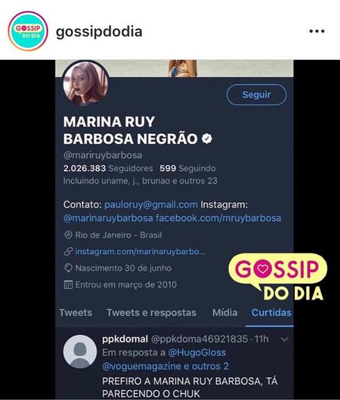 A curtida não passou despercebida pelos internautas que ficaram irritadíssimos com a situação! "Marina Ruy Barbosa, a feminista, a mulher que defende mulheres e odeia comparações. Porque para atuar em novelas é tão ruim e para manter esse papel de vítima é ótima? Ontem você falou que não aguenta mais rivalidade e hoje curte comentário diminuindo uma mulher e sua beleza", comentou uma moça.