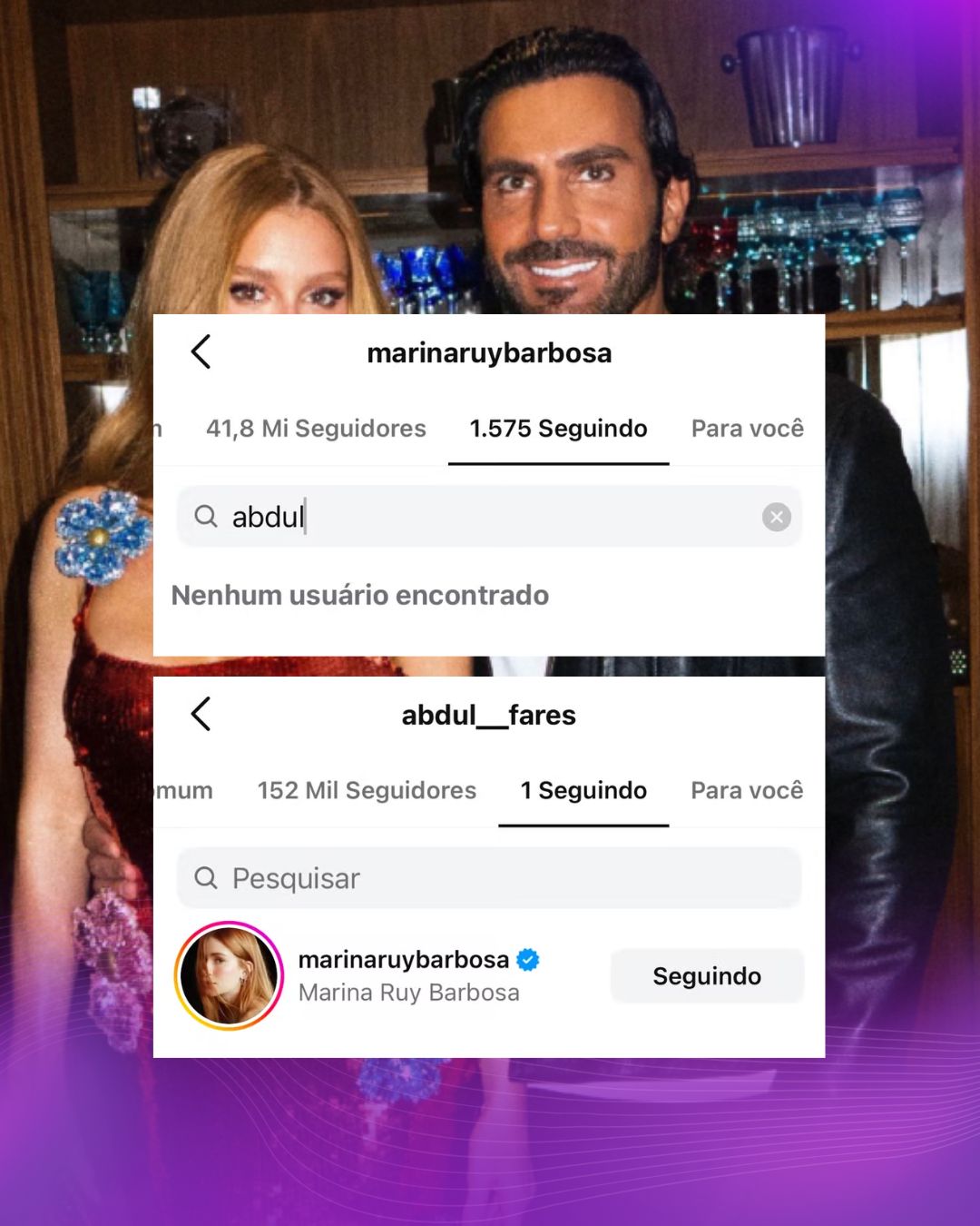 Marina deixa de seguir o noivo Abdul. Foto: Montagem Entretemeio