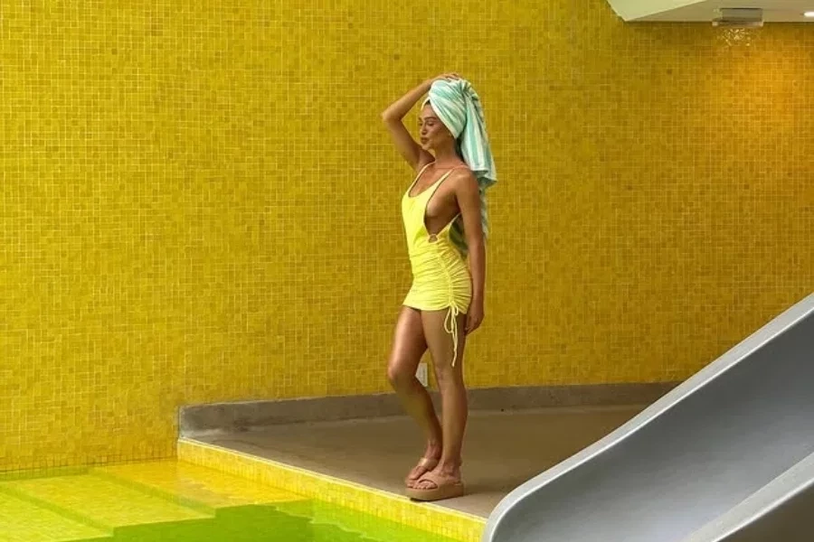 A estrela posou usando também um vestido praiano e surgiu com uma toalha enrolada nos cabelos à beira da piscina. Nos comentários do ensaio, diversos fãs deixaram elogios para a artista.