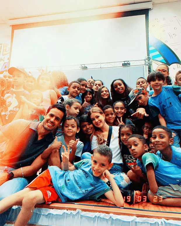 Mairna Ruy Barbosa tirou o fim de semana para se conectar com trabalhos sociais. A atriz e o marido, Xande Negrão, foram visitar a organização social Gerando Falcões, que atendem crianças e adultos com projetos voltados à cultura e esporte. No Instagram, a atriz publicou uma foto em que aparece com as crianças do projeto e se derreteu ao explicar o projeto.