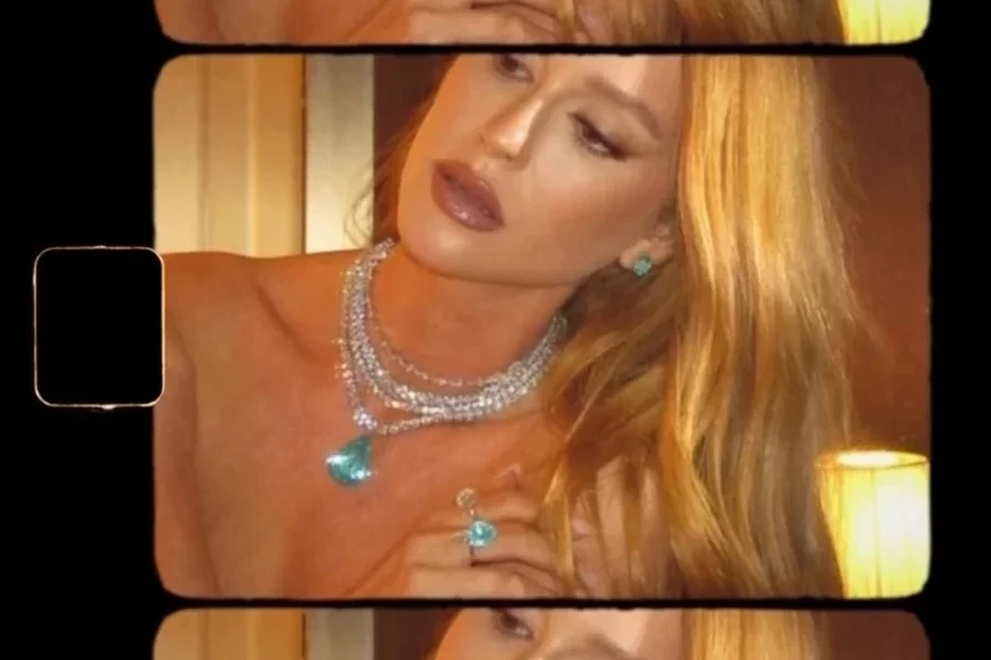 A peça de cor azul-turquesa é feita pela grife espanhola Balenciaga e custa a bagatela de US$9,790 (cerca de R$56,8 mil na cotação atual). Marina complementou o look com ainda mais luxo ao adicionar um colar de brilhantes, anéis e brincos, todos com detalhes em azul-turquesa.