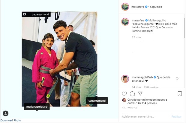 E ela fez ballet, ginástica, natação e outras tantas coisas mas escolheu o judô como esporte número 1! Feliz que fez essa escolha sozinha... que assim seja sempre, é o que mais desejo, que ela seja livre pra escolher", escreveu.