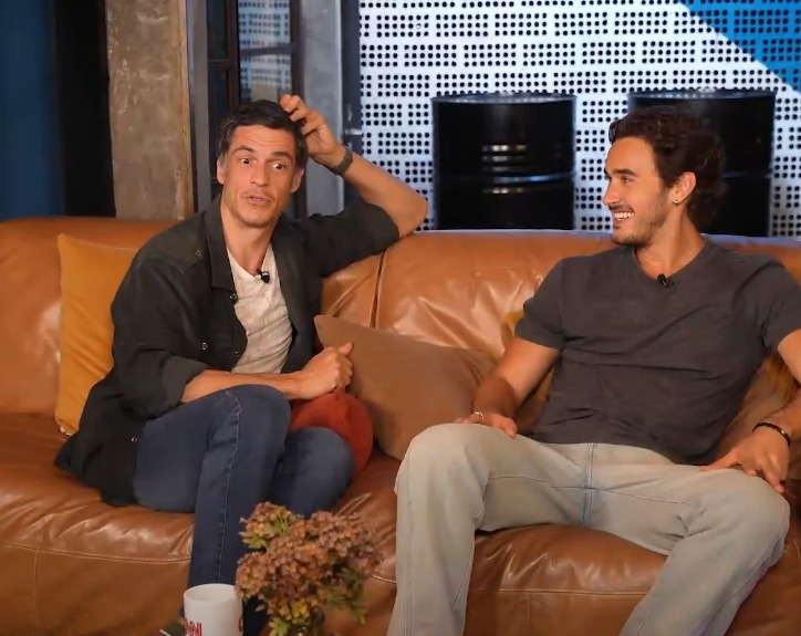 O ator Mateus Solano e o tambem ator Filipe Bragança em participação no videocast Na Palma da Mari. Foto: Reprodução/CNN