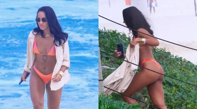 A ex-BBB 26, Maxiane, aproveitou esta quarta-feira (8) para curtir um dia de praia. A influenciadora apostou em um biquíni fluorescente com degradê em tons de laranja e rosa, combinado com uma camisa soltinha na cor creme e acessórios dourados, reforçando o estilo “casual chic” que marcou sua passagem pelo reality.