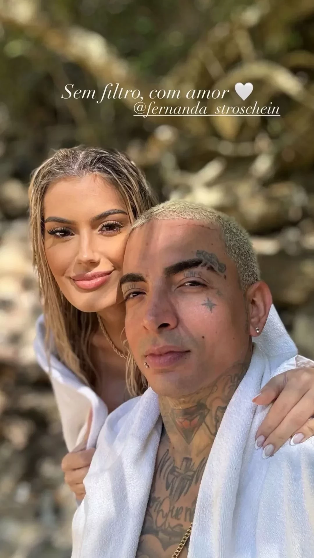 "Sem filtro, com amor", disse ele ao compartilhar uma selfie com Fernanda.