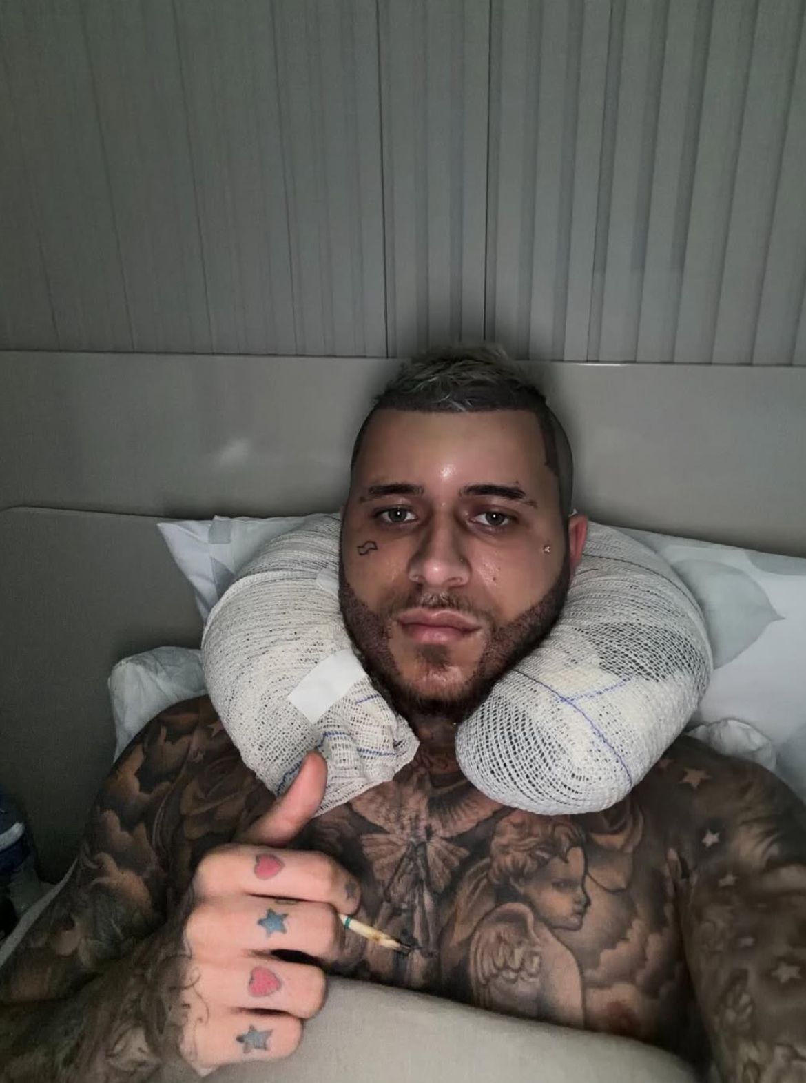 MC Pedrinho, de 23 anos, passou por um transplante capilar na última terça-feira (13) e usou as redes sociais para mostrar o resultado imediato do procedimento. O cantor chamou atenção ao aparecer com o rosto bastante inchado ao acordar no dia seguinte à cirurgia.
