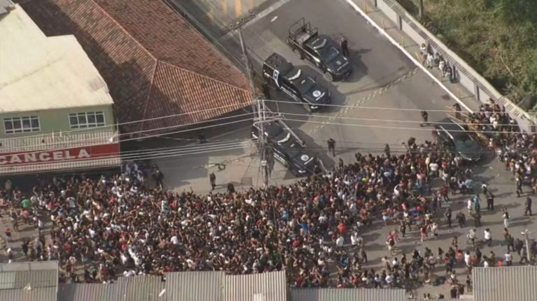 Centenas de pessoas estavam aguardando a saída do cantor, entre elas a esposa dele, Vivi Noronha, e o amigo MC Oruam, que, ao chegar, subiu em um ônibus e causou tumulto no local. Policiais militares reforçaram o esquema de segurança em frente ao Complexo de Gericinó, para a saída de Poze.