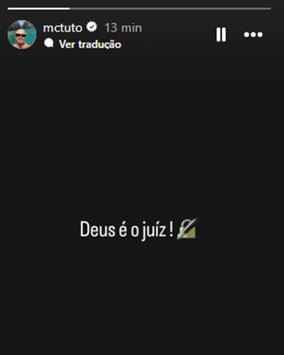 Logo após deixar a prisão, MC Tuto fez sua primeira publicação nas redes sociais. Em uma imagem de fundo preto, o cantor escreveu a frase: “Deus é o juiz”, sem acrescentar comentários ou explicações adicionais sobre o caso.