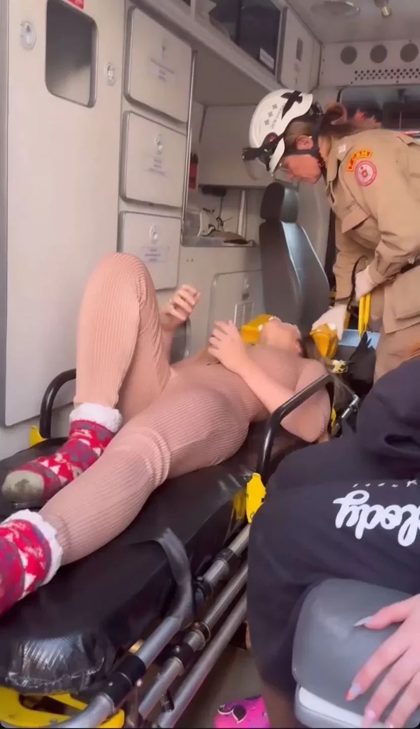“Eu tô com muita dor, tô com dor nas costas, tô com dor na cabeça, meus dedos estão todos doendo”, disse ela no vídeo. Em seguida, ela aparece recebendo atendimento dentro de uma ambulância.