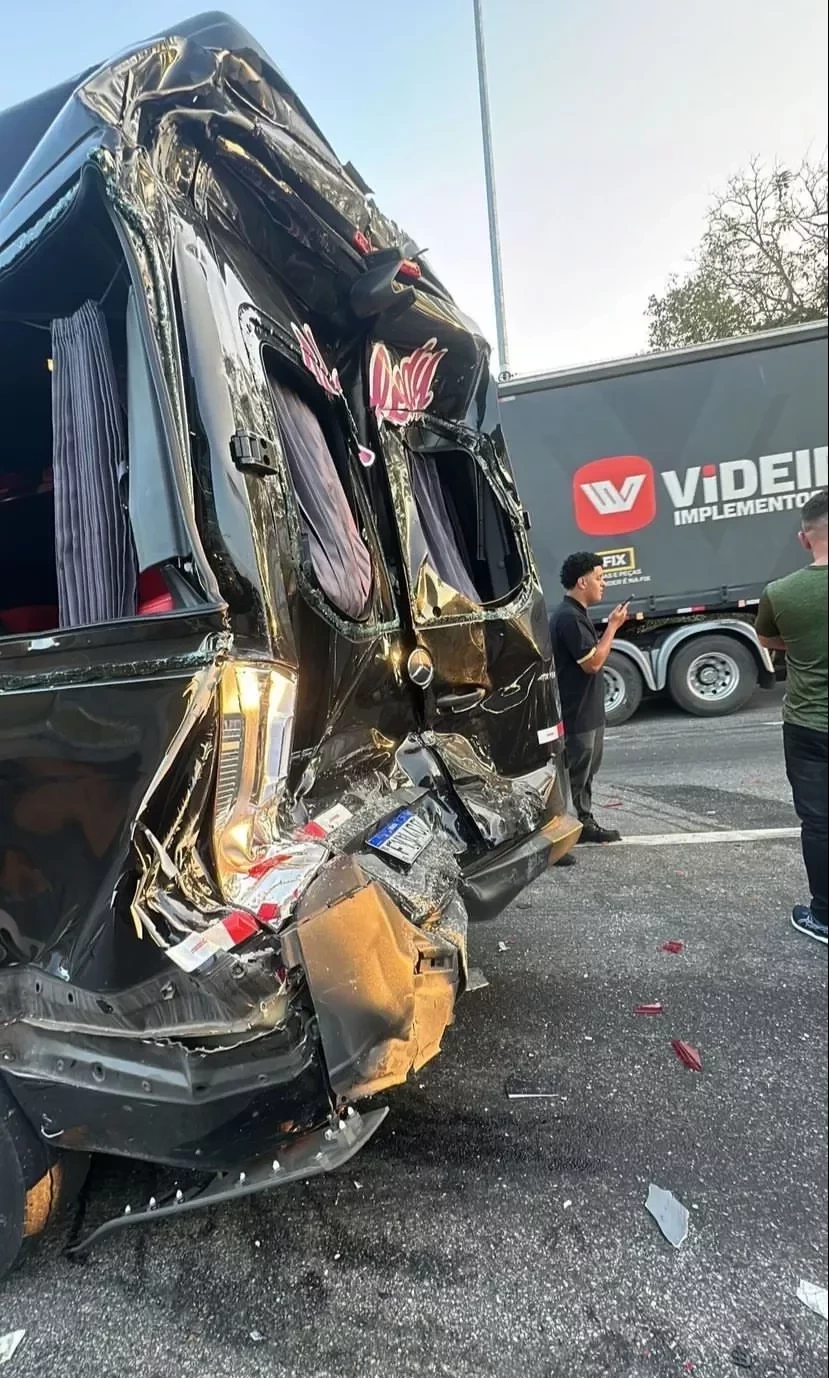 A artista contou que um ônibus de viagem bateu na traseira da van, que estava parada. No carro estavam sua equipe e sua irmã, a cantora Bella. "Foi um ônibus de viagem. Ele bateu na gente e saiu arrastando todos os carros", afirmou ela.