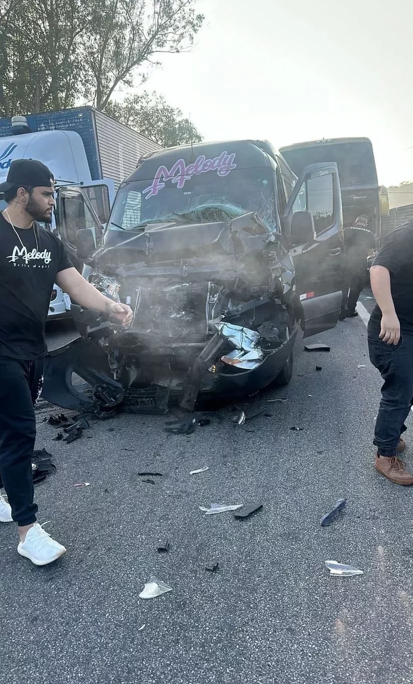 A van em que estava a cantora Melody sofreu um acidente na tarde deste sábado (20), quando estava a caminho do Rio de Janeiro para cumprir a agenda de shows. Em suas redes sociais, ela publicou registros do acidente, que acabou danificando toda a frente do veículo. De acordo com ela, um ônibus teria colidido com a van.