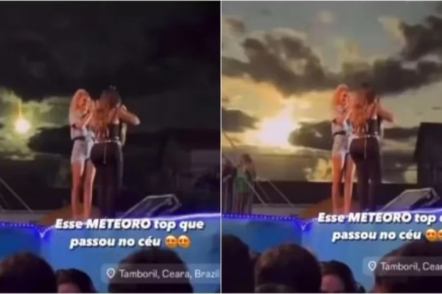 Uma das pessoas que gravava o show registrou o momento. Simone estava no palco do ‘Tamboril Fest’ com uma convidada, quando rapidamente o céu é iluminado pelo meteoro. Na legenda o fã escreveu: “esse meteoro top que passou no céu”, disse.