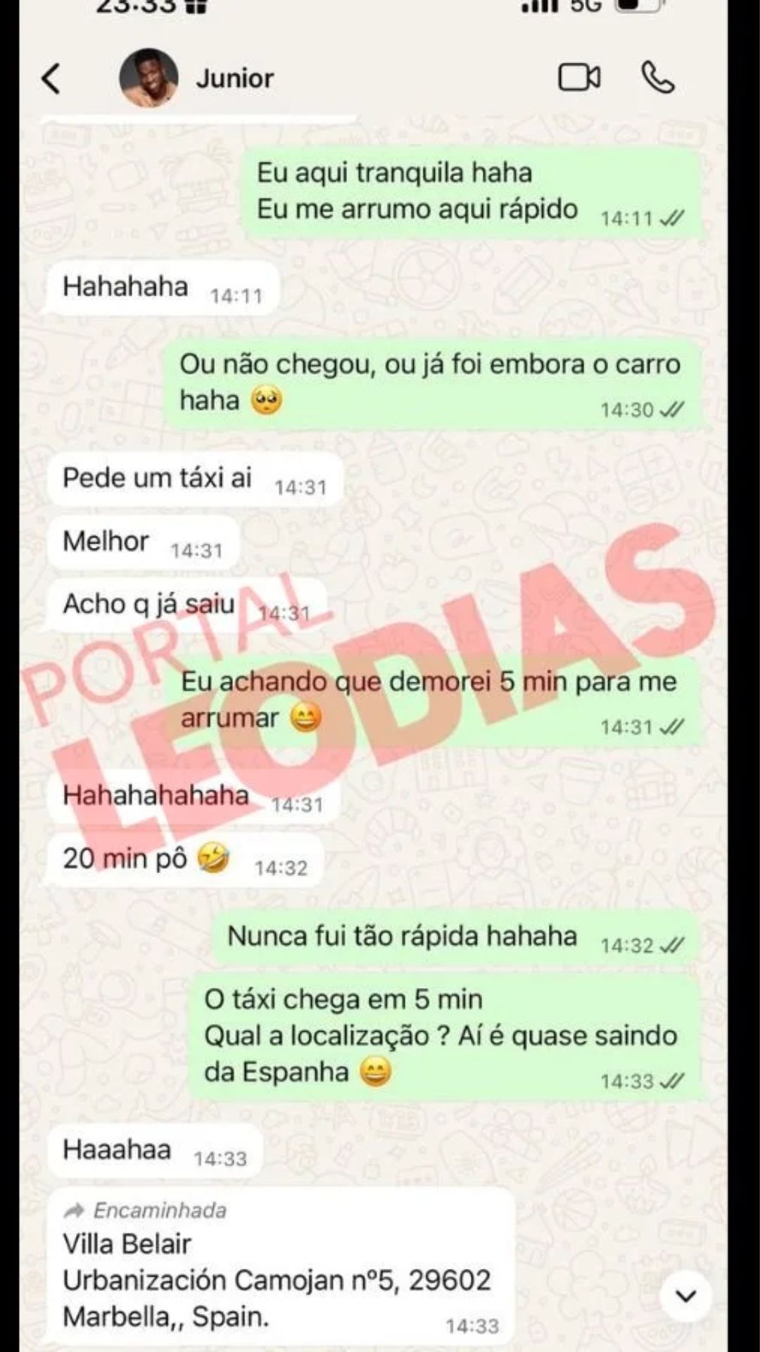 Em uma das conversas mais recentes, Vinicius teria respondido a um vídeo de Day com um emoji de olhos curiosos. Ao ser questionado por ela sobre onde estava, o craque respondeu: “Longe. Coreia e você?”. A modelo então disse estar nas Maldivas, e o jogador reagiu em tom descontraído: “Tá namorando aí, né? Hahaha”.