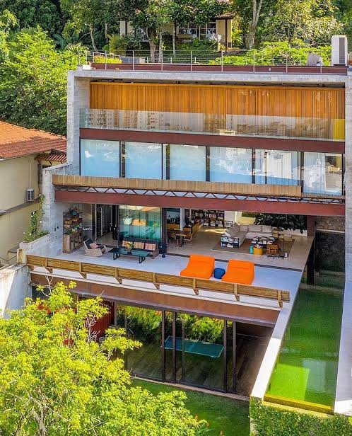 Amante da natureza, Benício confessou seu local favorito: "Um dos lugares que mais fico é a parte de cima [terraço], com vista para a floresta. A natureza do Rio de Janeiro é muito forte, que resiste a tudo e todos. Ela não deixa de ser espetacular". A moderna piscina foi pensada como um recurso de arquitetura, perpassando a sala de estar e a varanda. A casa ainda conta com pista de skate, área de jogos, piscina na sala e rooftop.