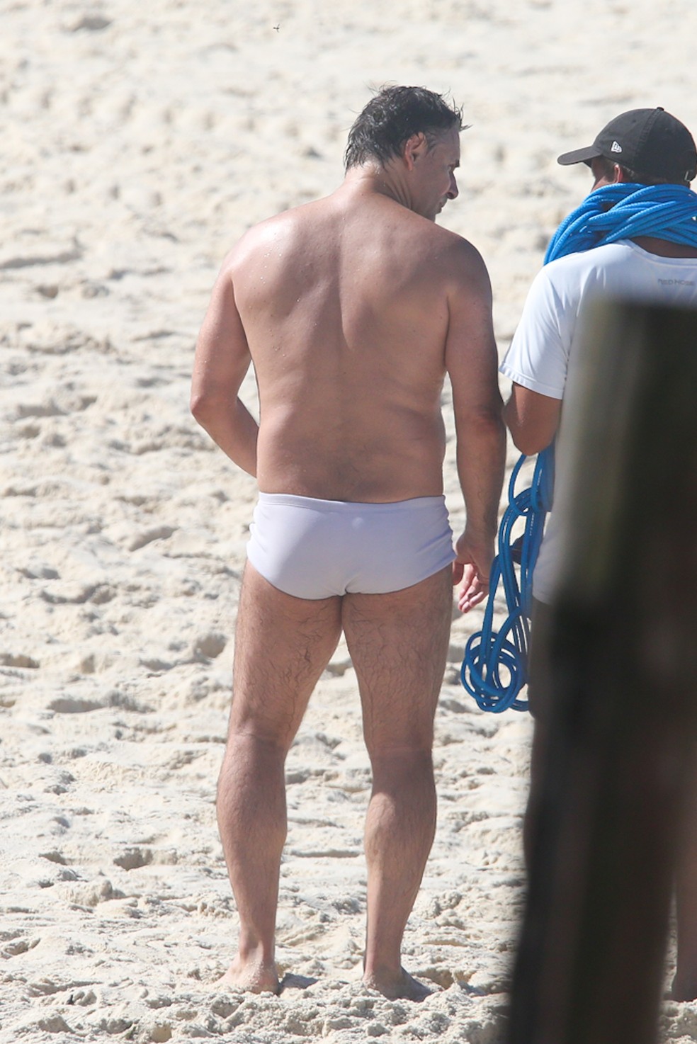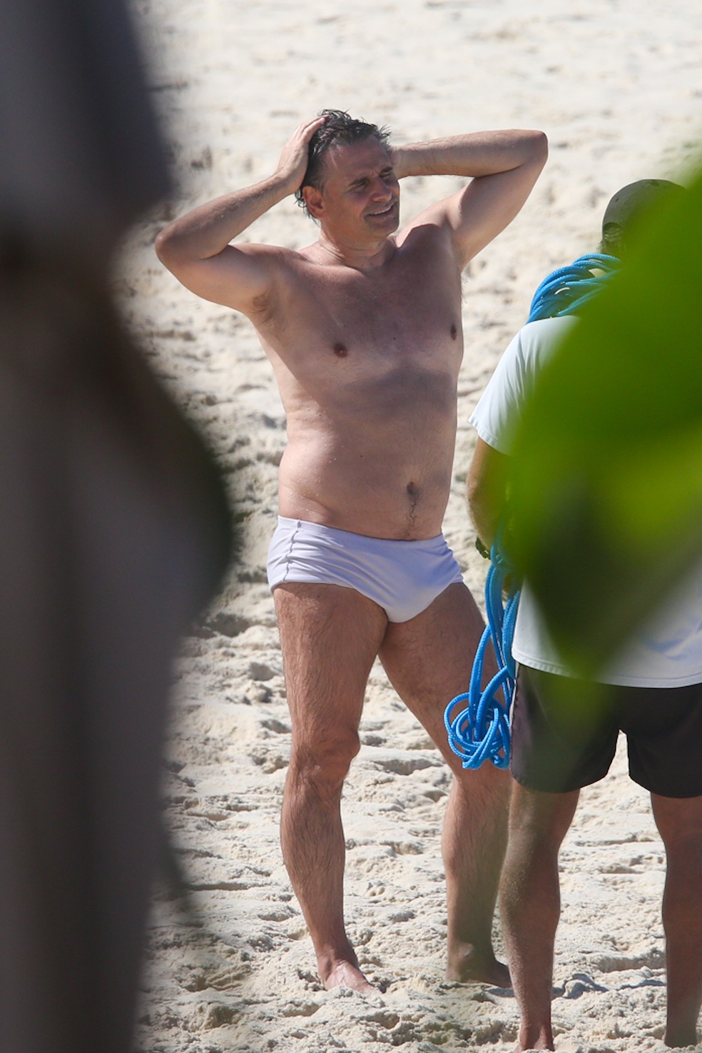 Murilo Rosa, de 55 anos, aproveitou o início da semana para relaxar em uma praia na Barra da Tijuca, na Zona Sudoeste do Rio de Janeiro, ao lado da esposa, a supermodelo Fernanda Tavares, de 45. O ator apareceu de sunga branca, enquanto ela apostou em um look fitness que lembrava um biquíni, completado com boné e óculos de sol.