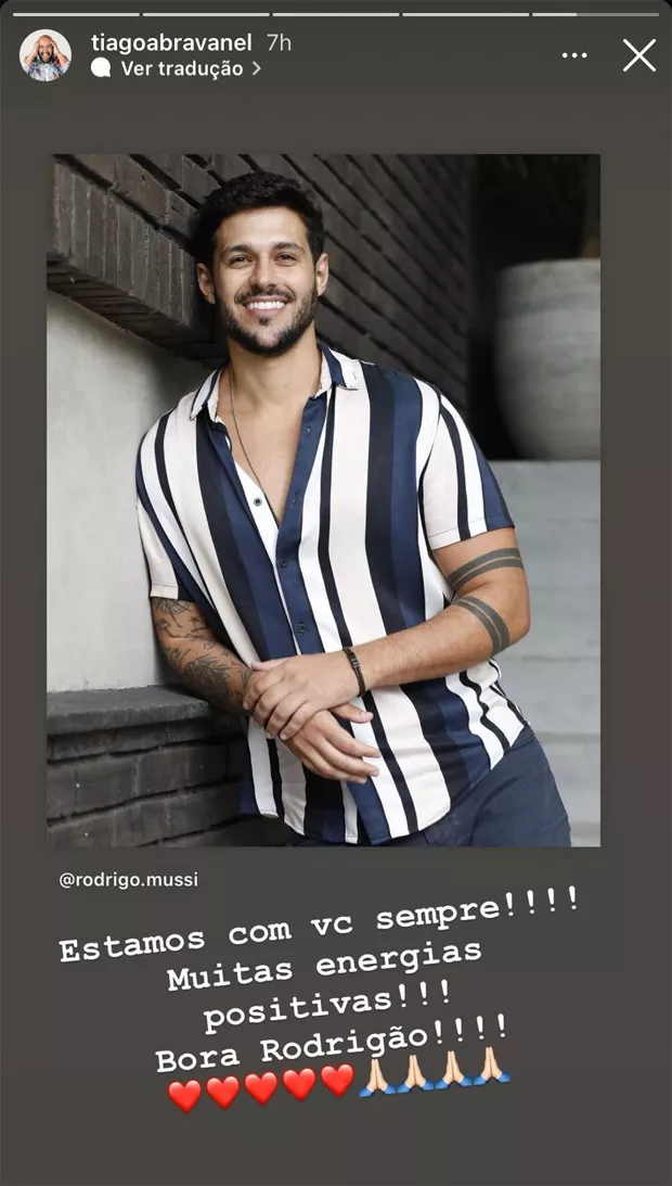 Tiago Abravanel ainda postou em seu Instagram uma mensagem pedindo boas vibrações para o amigo. "Estamos com você sempre! Muitas energias positivas! Bóra (sic) Rodrigão".