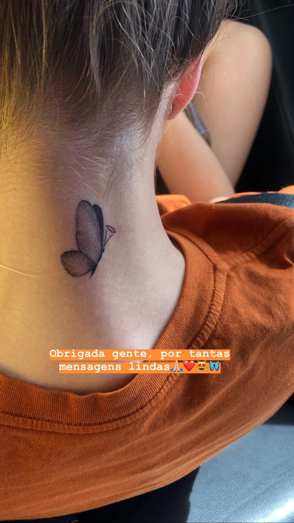 Karoline Calheiros, namorada do cantor Gabriel Diniz, morto em um acidente aéreo no dia 27 de maio, decidiu homenagear o amado com uma tatuagem. Ela mostrou em seu Instagram, neste domingo (16), uma borboleta desenhada na nuca.