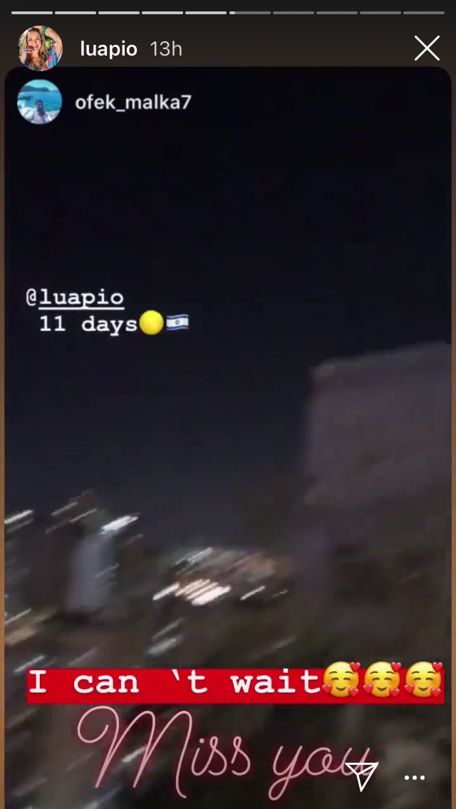Na imagem, compartilhada em seus Stories, o jogador de basquete filmou a lua, marcou a @ da amada, colocou sugestivos emojis de lua e da bandeira de Israel, e iniciou a contagem, "11 days" (em tradução, "11 dias").
