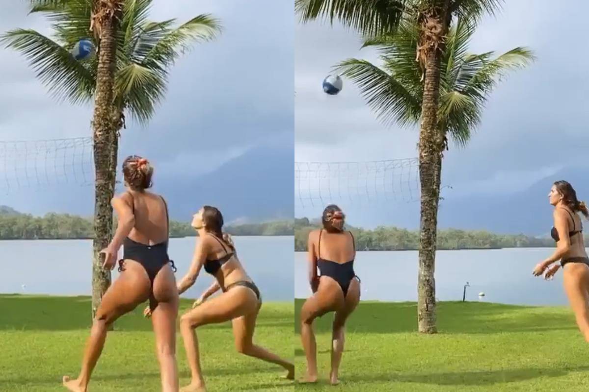 João Figueiredo, namorado de Sasha Meneghel, compartilhou em seu Instagram neste domingo (26) um vídeo em que a filha de Xuxa e Luciano Szafir, de 21 anos, aparece jogando vôlei. No registro, ela está usando um maiô preto fio-dental.