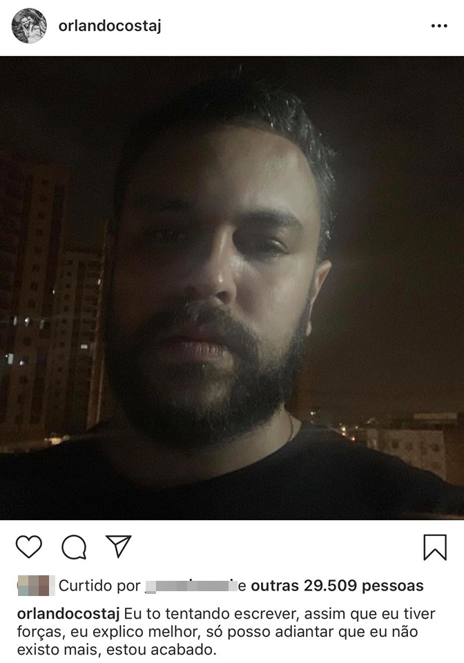 "Que os espíritos de luz te deem serenidade nesse momento pra passar por isso", comentou um. "Força Orlando! Ninguem sabe o que fato aconteceu. Fique em paz", escreveu outro. "Gente não apedrejem o cara. Ele tá muito mal com tudo isso, tenham empatia por favor", aconselhou uma moça.