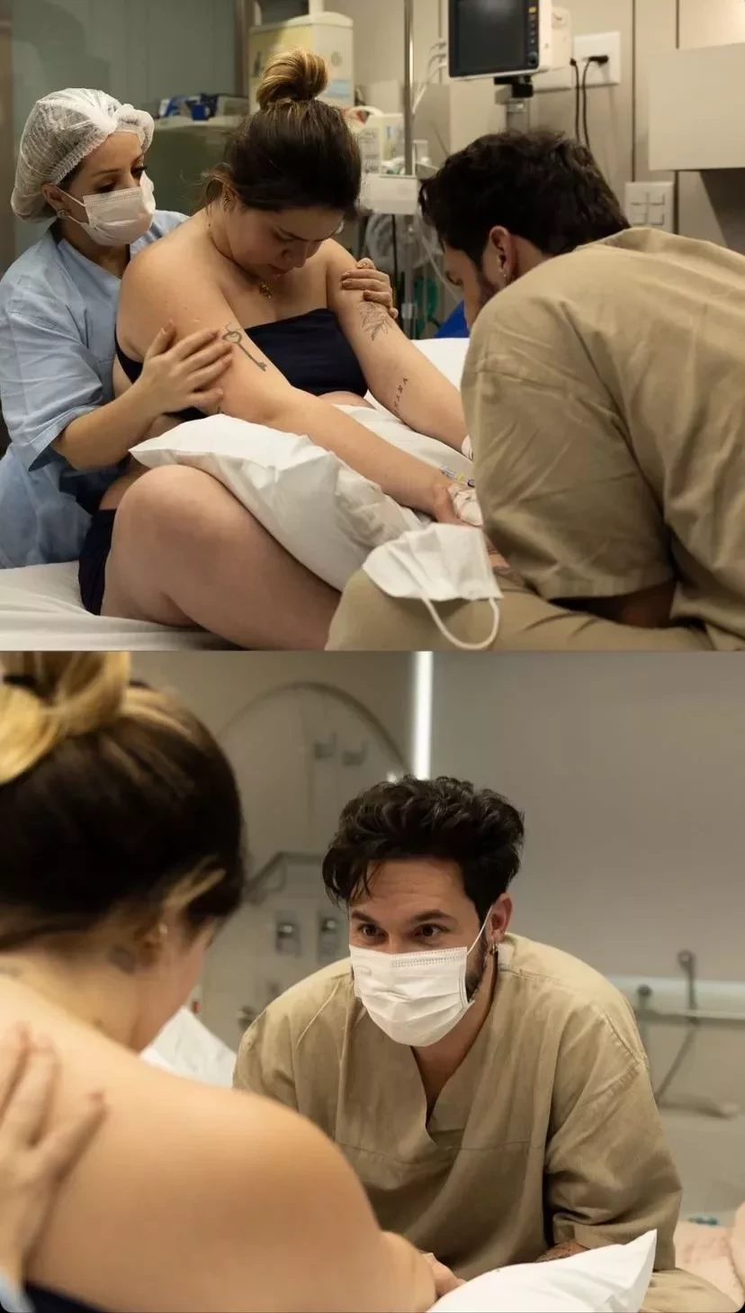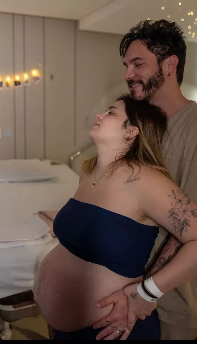 Nas redes sociais, Eliezer divulgou algumas imagens ao lado da youtuber durante o nascimento do segundo filho.