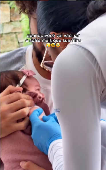 Nas redes sociais, o artista publicou o vídeo do momento e celebrou a missão cumprida. “Painho sofre junto, mas cumpre a missão! Caderninho de vacinas da Zuza devidamente atualizado”, comentou.