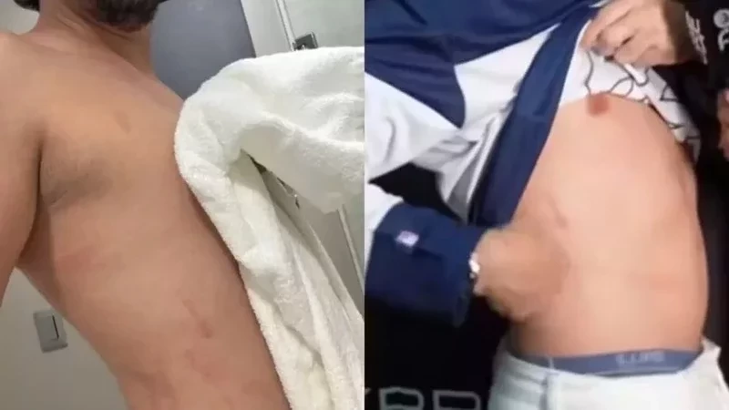 Nattan mostrando hematomas no corpo. Foto: Instagram